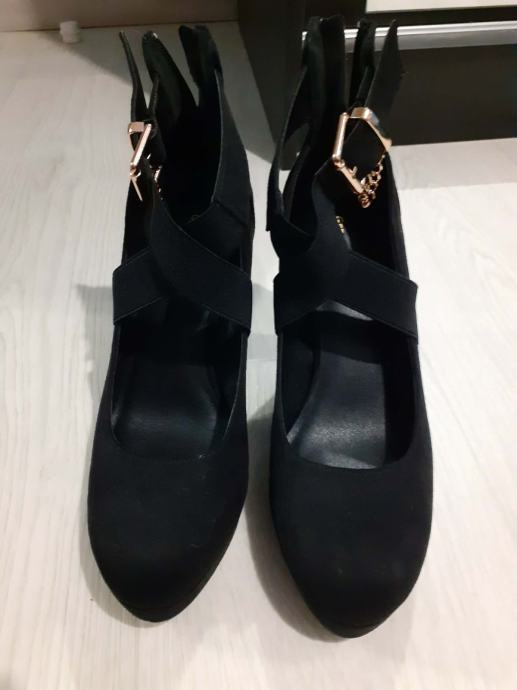 Crne štikle, s debljom potpeticom.