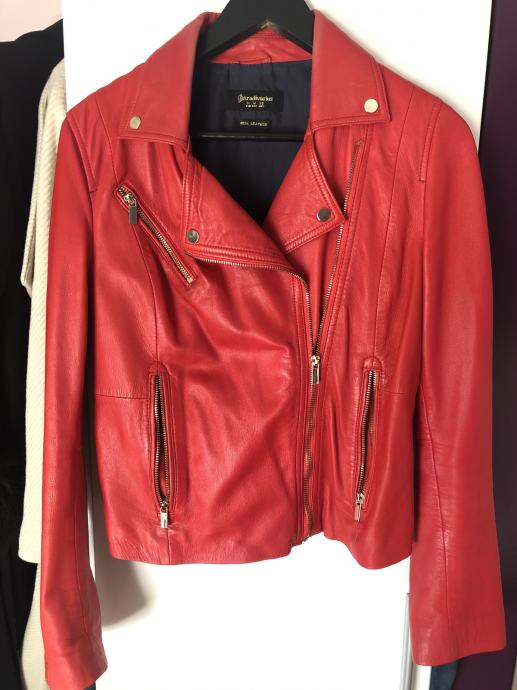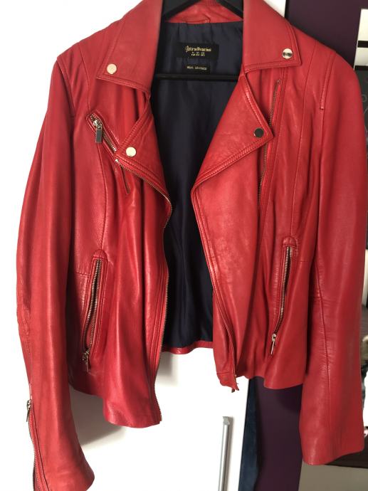 Crvena kožna jakna od mekane kože. Nošena par puta.