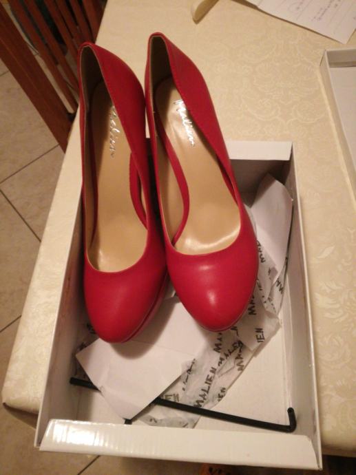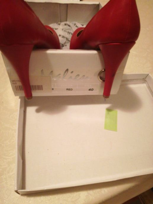 Nove "kožne" crvene cipele (piše 40) ali vise 39-39.5??.Visina pete 12 cm. Predivne sexi cipele za svecano.?? Poštarinu snosi kupac.
