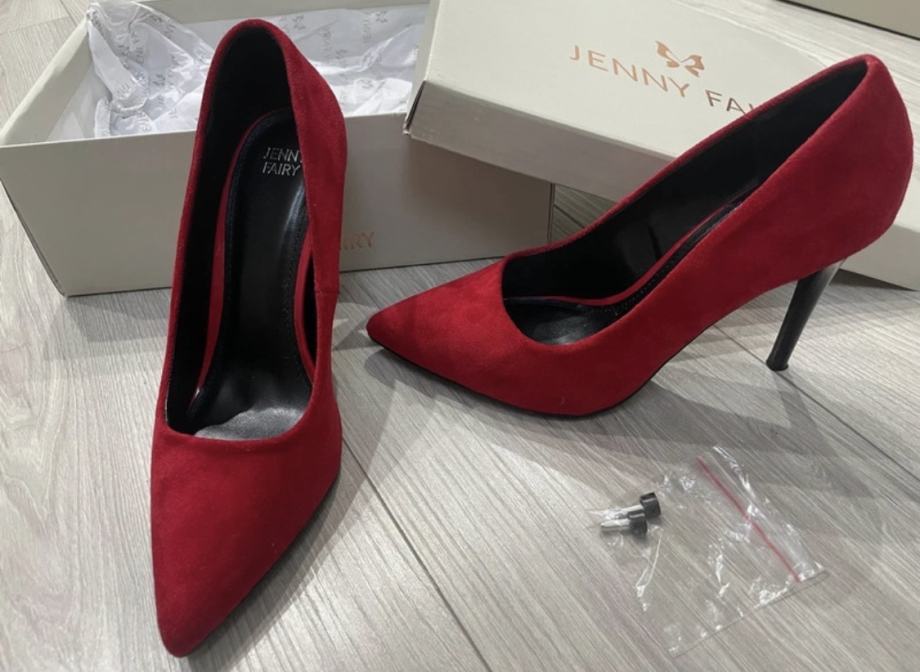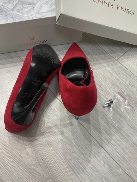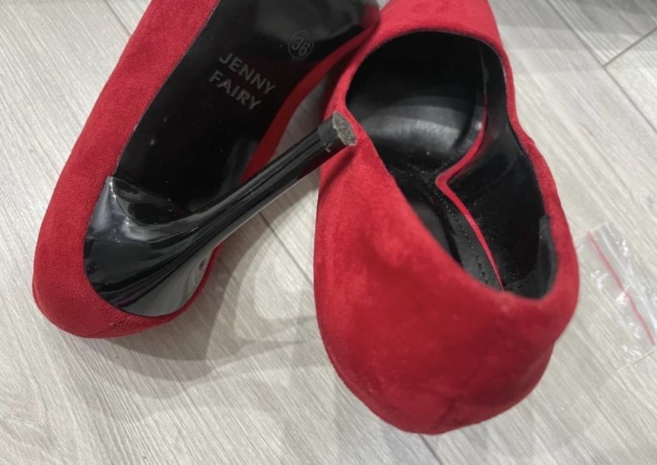 Prodajem crvene štikle Jenny fairy, 36 veličina, sjajna crna peta, kupljene u Ccc za 200 kn, a prodajem za 7 eur. Nošene jednom samo doslovno pola sata, jako očuvane.