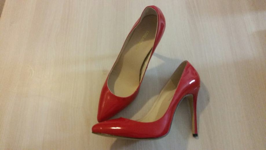 Nove crvene štikle nikad nošene, meni pre visoka peta. Zapakirane i u kutiji.