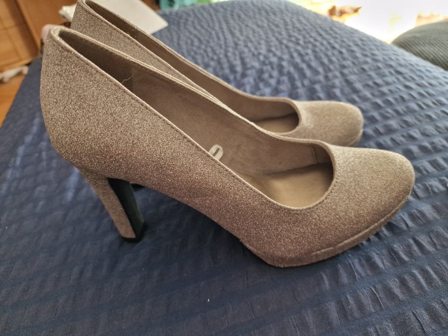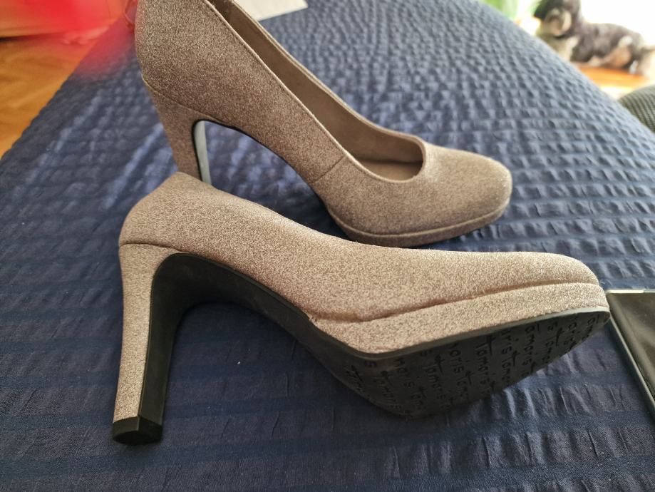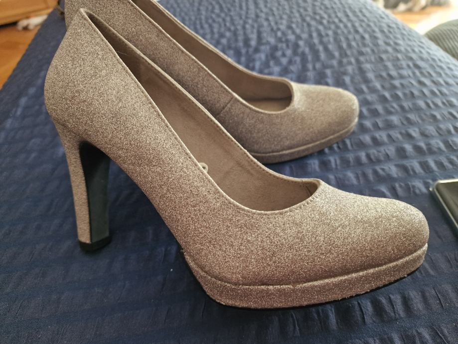 Prodajem potpuno nove elegantne cipele, srebrna boja, nikada nošene, Tamaris, i sandale isto broj 37, visina pete cca 7 cm