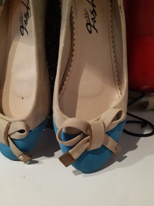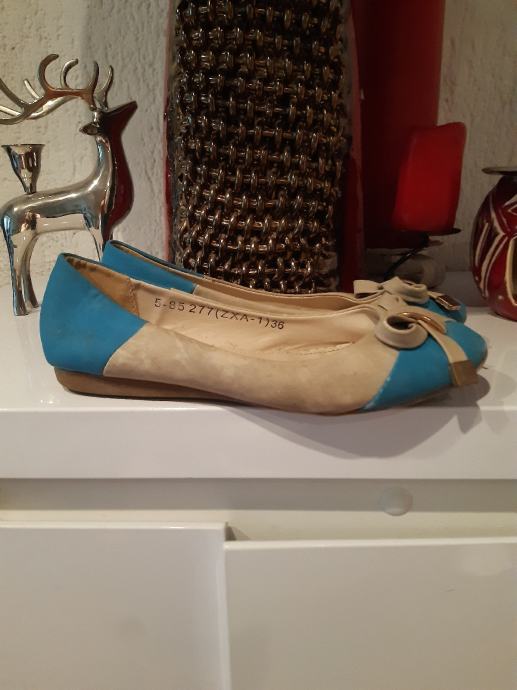 FESHION tirkizno- bež balerinke s gumenim džonom, vel. 36.