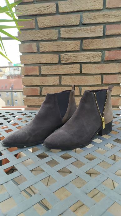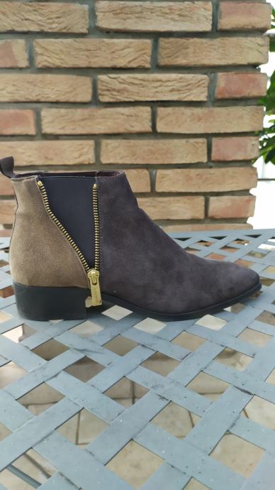 Brušena koža, sivo smeđa kombinacija, ukrasni patent zatvarač