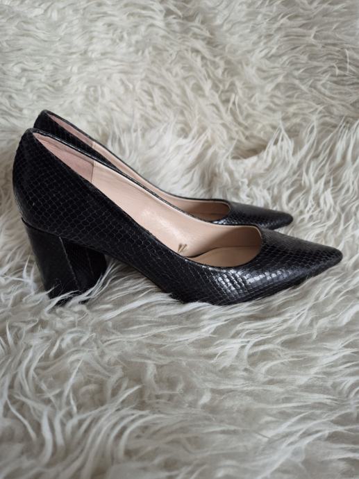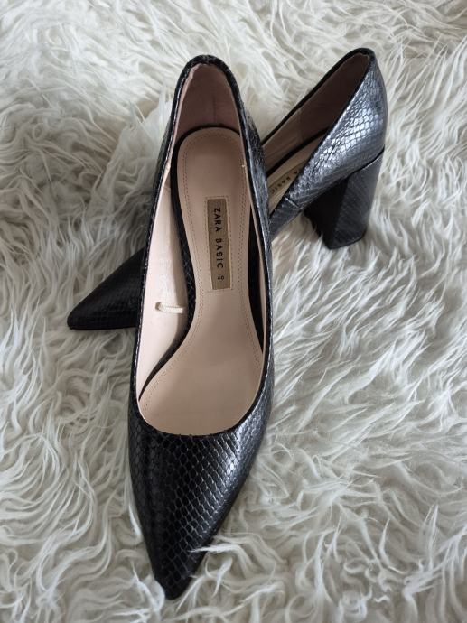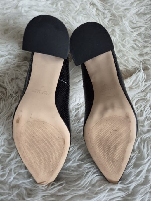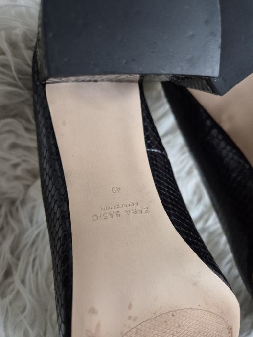 Prekrasne zenske Zara cipele, crne boje, na blok petu visine 10cm, broj 40.