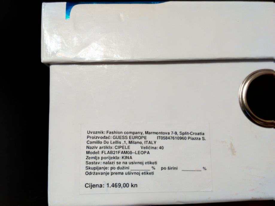 SNIŽENO!!! Potpuno nove guess kožne cipele, nikad nošene. Vrlo su svečane i elegantne te vrlo udobne. Cijena u dućanu bila (vidi se na kutiji) 1469 kn. Kupljene su na sniženju uz 30% a prodajem uz 70% za 440 kn.