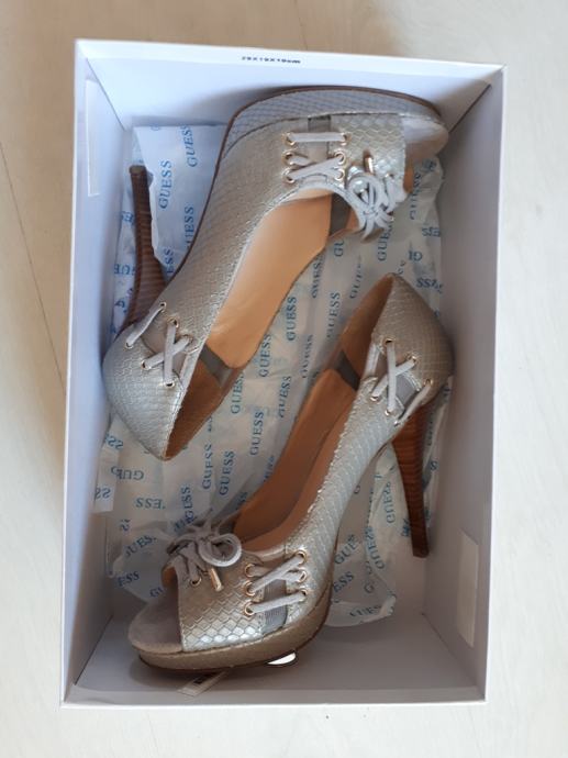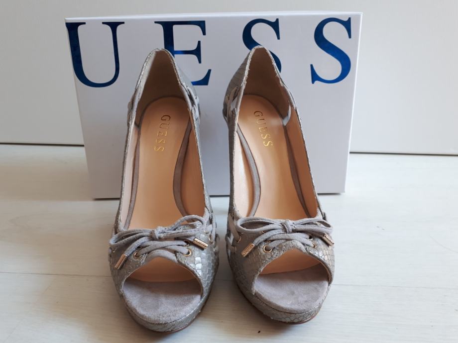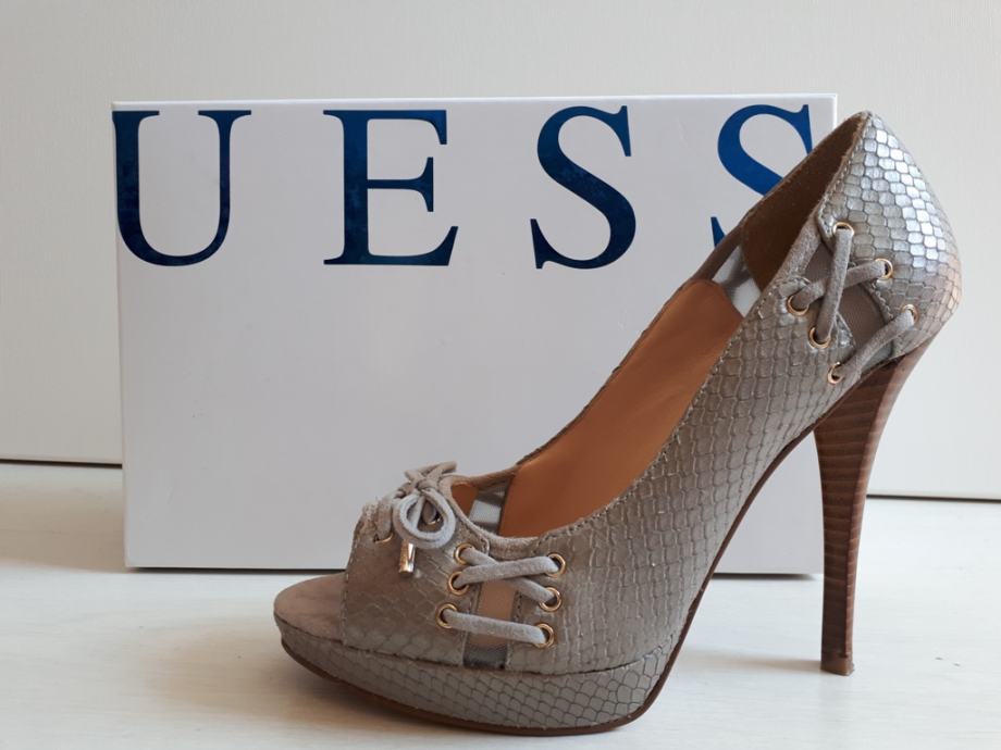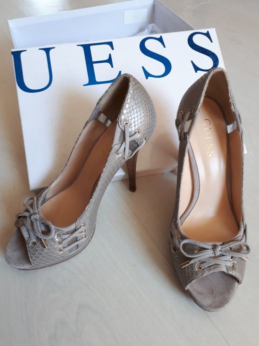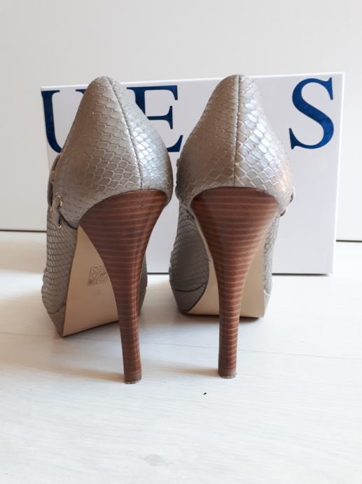 GUESS SIVE CIPELE br.36 ,sve koža (izvana i iznutra ) ,uzorak zmija, visina pete 12 cm , ( platforma 2 cm) , par puta nošene.