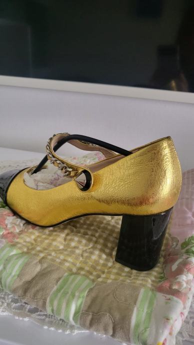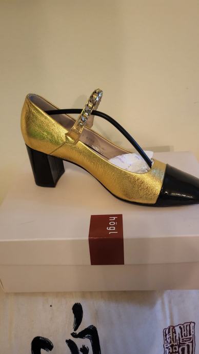 Prodajem kožne Hogl zlatno-crne cipele br.38 nošene par puta. Peta je 6.5cm. Šaljem dodatne fotografije ukoliko ste zainteresirani.Može i proba po dogovoru. Stanje izvrsno!