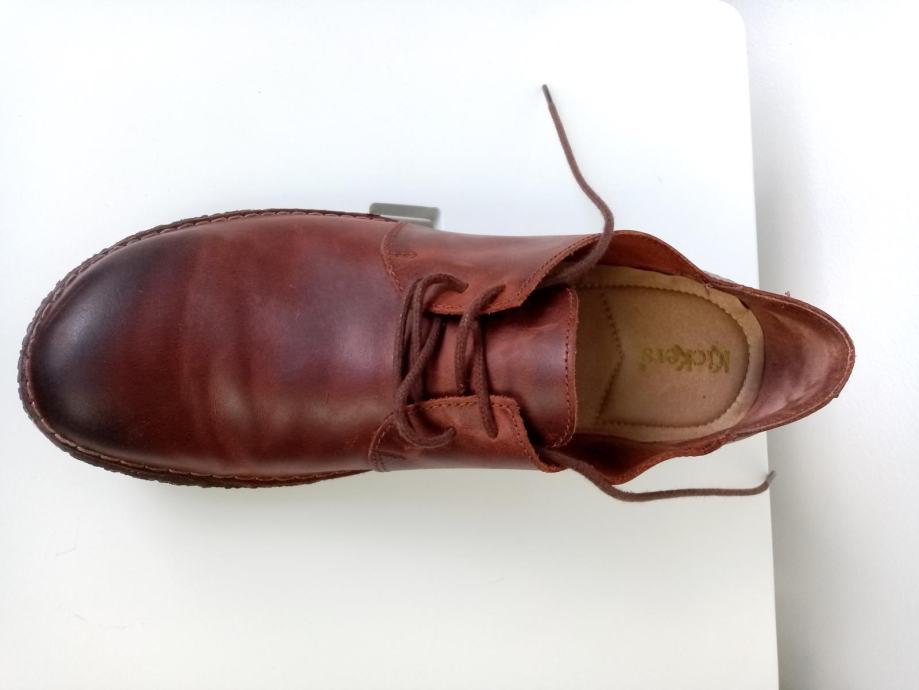 KicKers ženske niske cipele, od mekane smeđe kože, dva puta obuvene, izgledaju kao nove. Na njima piše broj 41, ali veličina odgovara broju 40 ili 40 i 1/2. Meni su premale. Cijena je 50 Eura. Ne šaljem poštom. Kontak mobi 098 670 890.