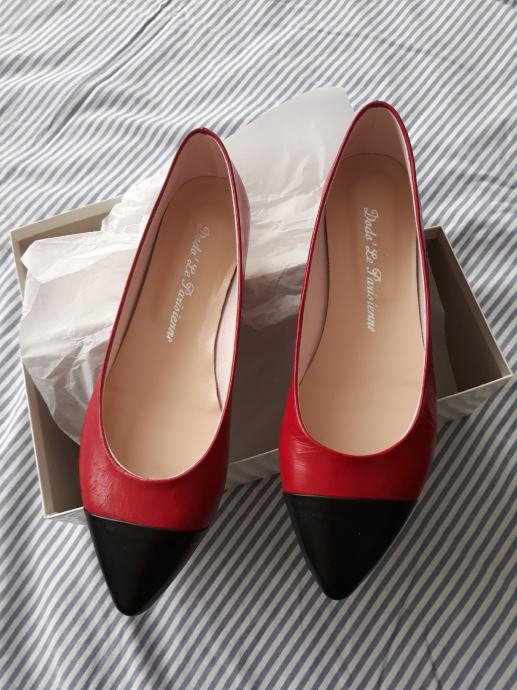 Nove.nikad nošene.broj 40.crno crvene.mekana koza.
