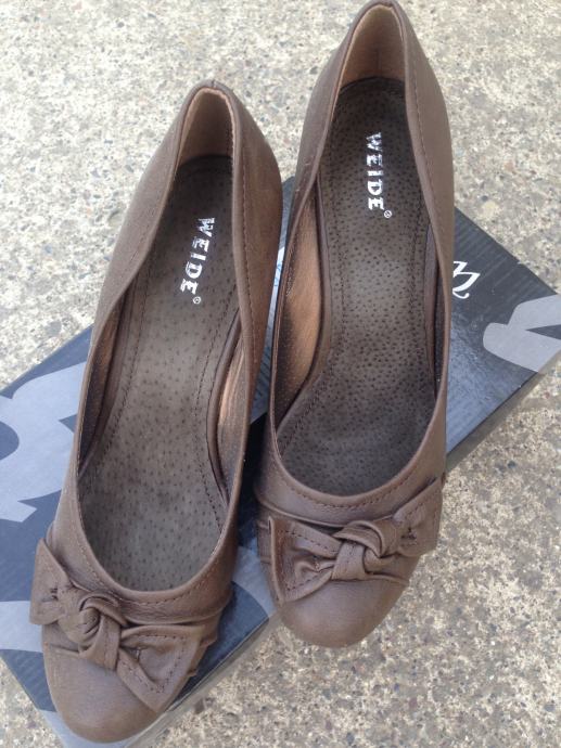 Kožne cipele smeđe s punom petom, samo isprobane. Prodajem za 15€