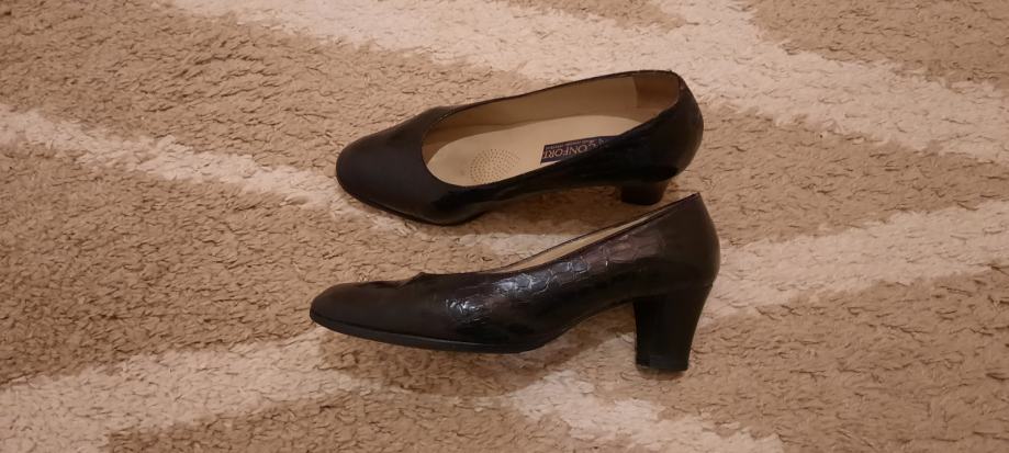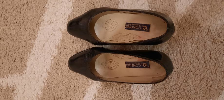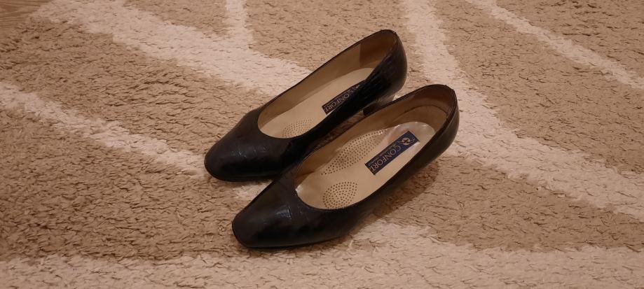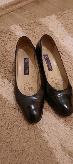 Savršeno udobne kožne cipele na malu petu - 6 cm. Velicina 39....mogu i za široko stopalo. Prava koža izvana I iznutra. Marka Comfort. Odozdo su stavljeni potplati da se ne kližu. Jako skupo plaćene.
