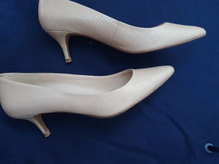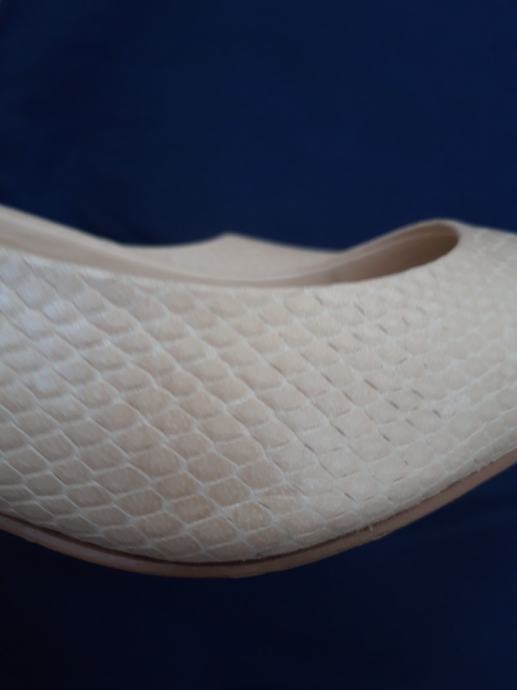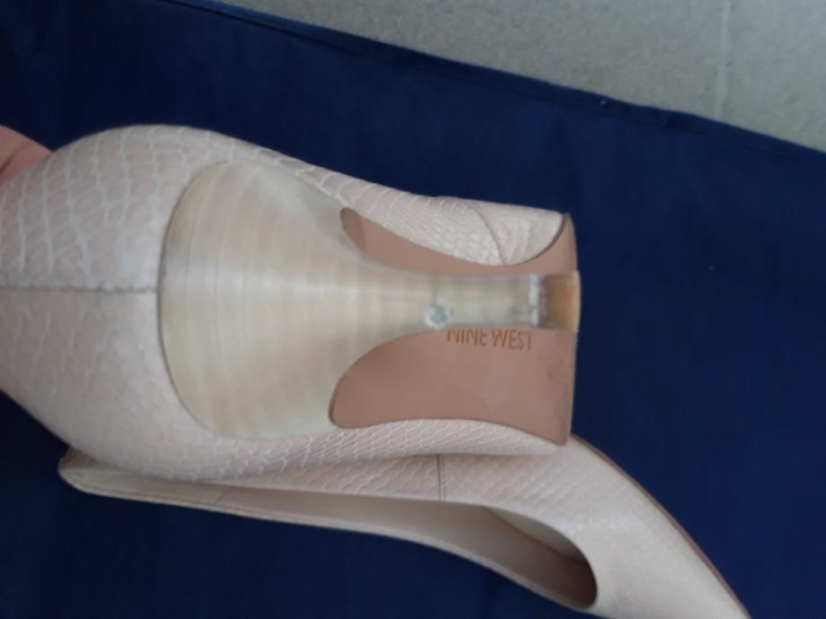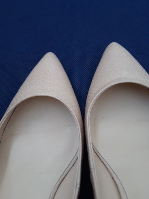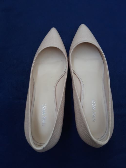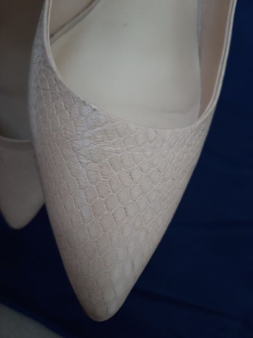 Prodajem jednom nošene cipele (na vjenčanju), krem boje. Marka Nine West. Cipele imaju oštećenje na petama (zbog kamenčića po kojima sam hodala) ali se ne vide ako nosite vjenčanicu/dugu haljinu. Možda je moguće sanirati kod postolara...Nisam pitala.