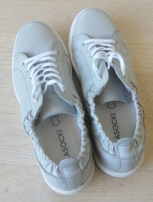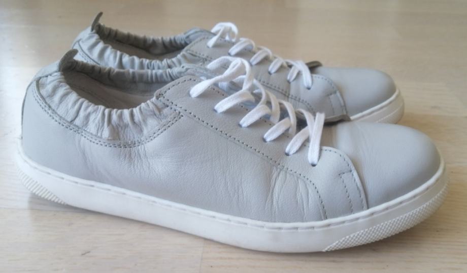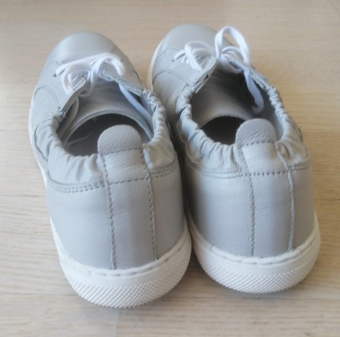 Svijetlo sive boje, bijelog potplata i vezica.