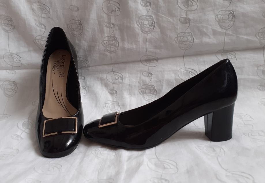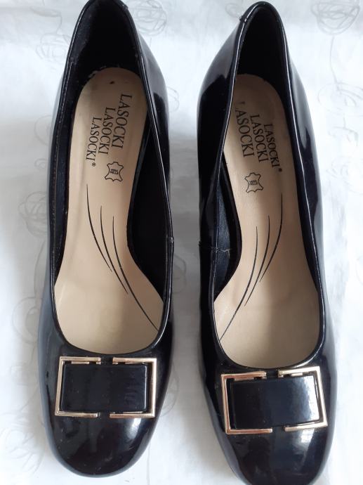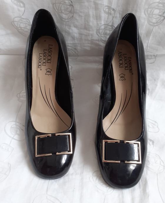 Lasocki cipele prava lakirana koža crne boje, unutra isto prava koža.
