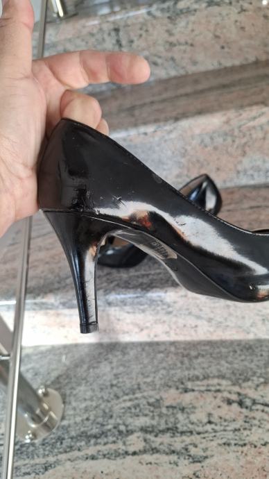 Cipele nošene svega 1–2 puta, što se vidi po peti, ali imaju nedostatke u vidu površinskih tragova sa strana koji su nastali jer nisu bile pažljivo skladištene . U nošenju se tragovi ne primjećuju .