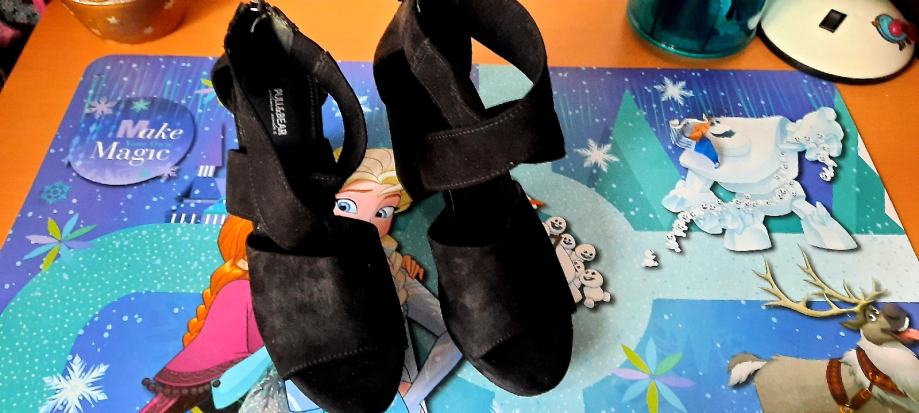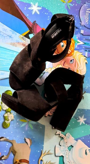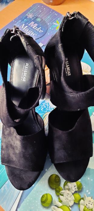 Kožne sandale s platformom Pull and Bear crne 39,kao nove .Otraga patent.