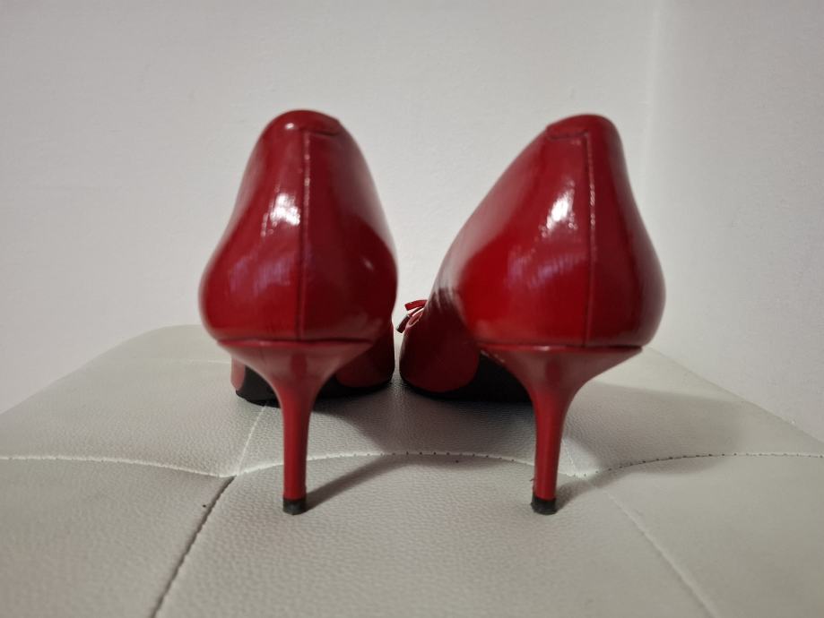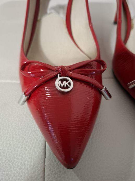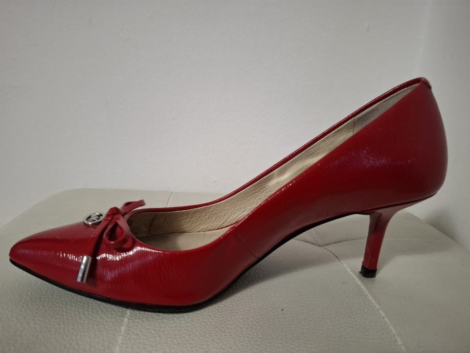Prodajem elegantne Michael Kors štikle u crvenoj boji, veličina 37. Cipele su izrađene od lakirane kože s diskretnom teksturom i imaju šiljast vrh. Visina pete je 6 cm.