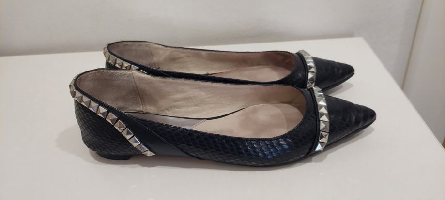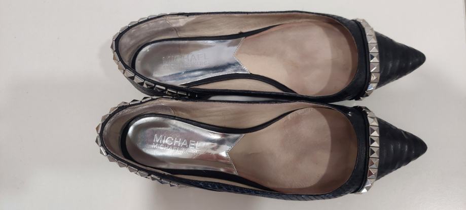 Michael Kors cipele, stil balerinki, crne - imitacija zmijske kože sa srebrnim ukrasima, kožne (gornji i donji dio te gazište), dodatno postavljen đon, u originalnoj kutiji