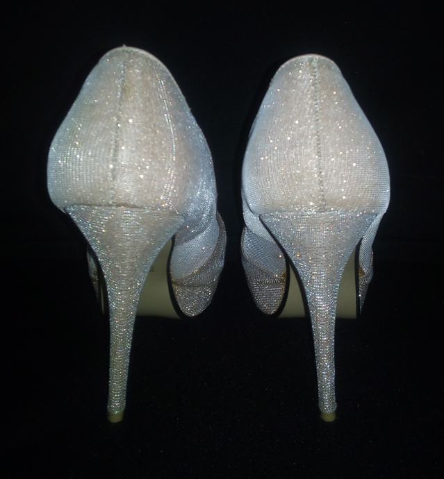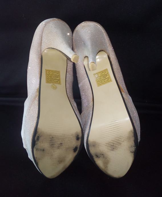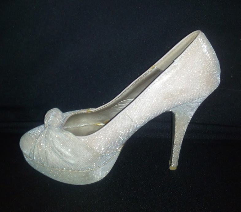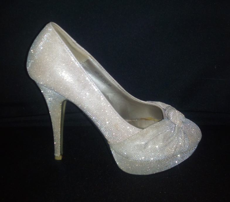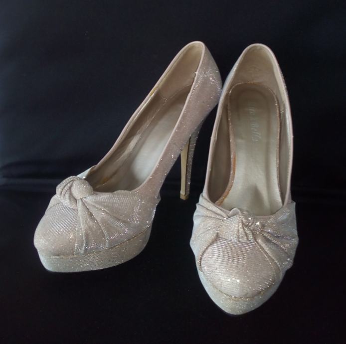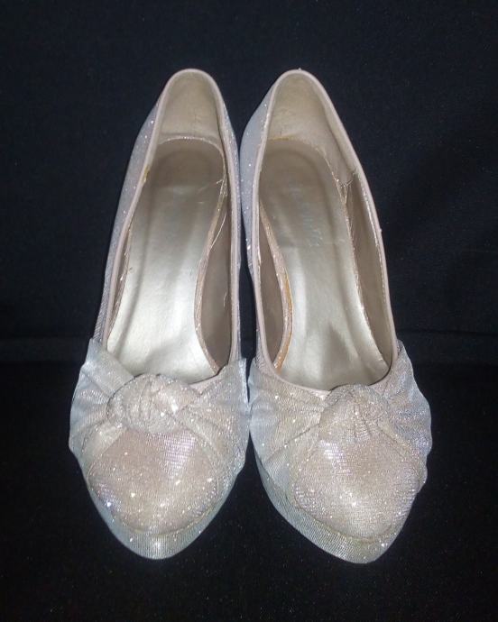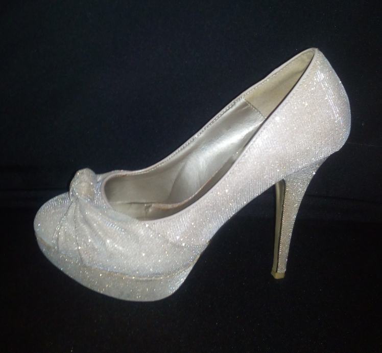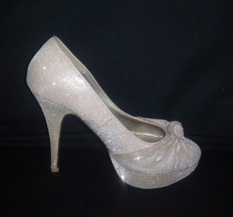 Elegantne svjetlucave salonke Mira & Bella, veličine 40. Peta visine 13 cm, a prednji plato 3 cm. Kupljene za jednu prigodu i jednom obuvene.