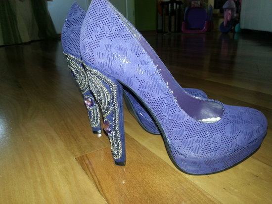 Ljubičaste,s prekrasno uređenom petom,veličina 39,izuzetno udobne,par puta nošene
