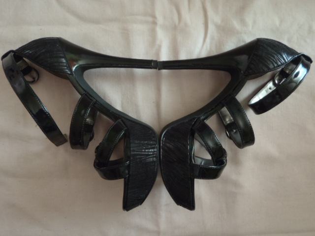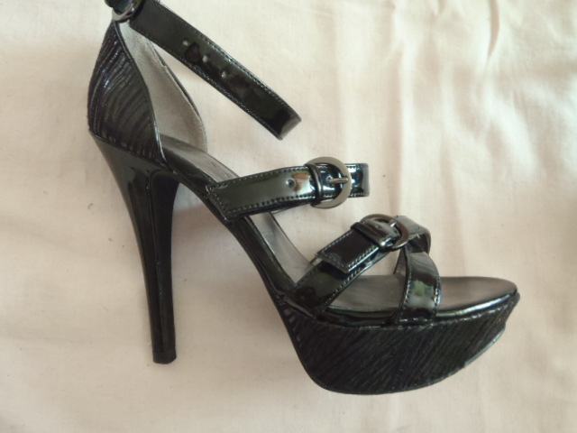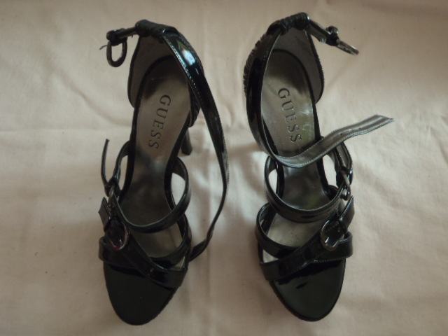 Dizajnerske platforma sandale GUESS vel 36 - 37, duzina gazista 22cm, visina platforme 3 cm , visina pete 12 cm vrlo malo nosene , kao nove- koža lak/velur -kombinacija, izuzetno atraktivne i ultra moderne , prekrasno stoje na nozi--jako jako ocuvane kao NOVE