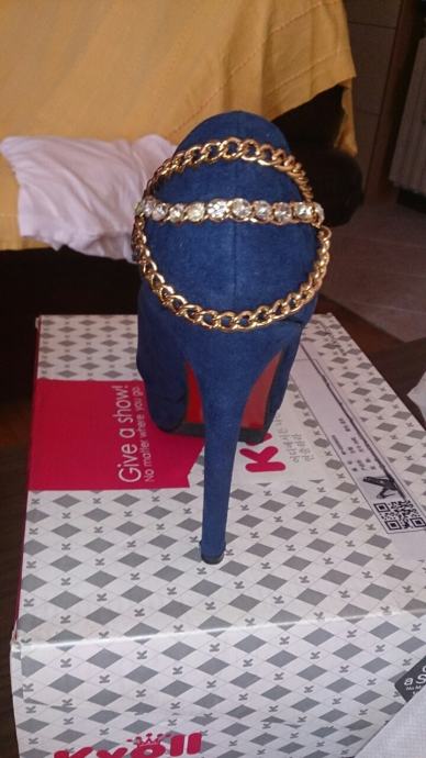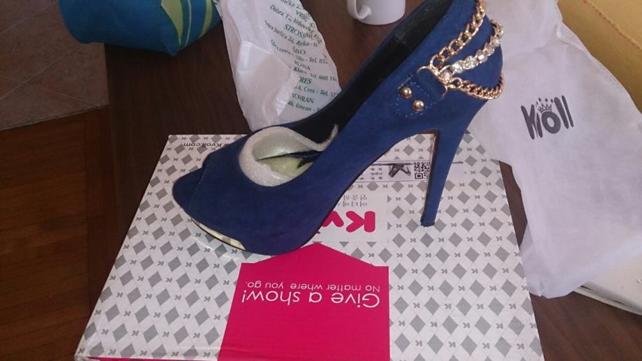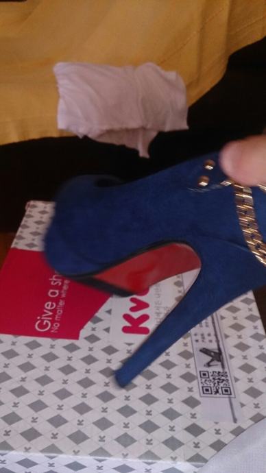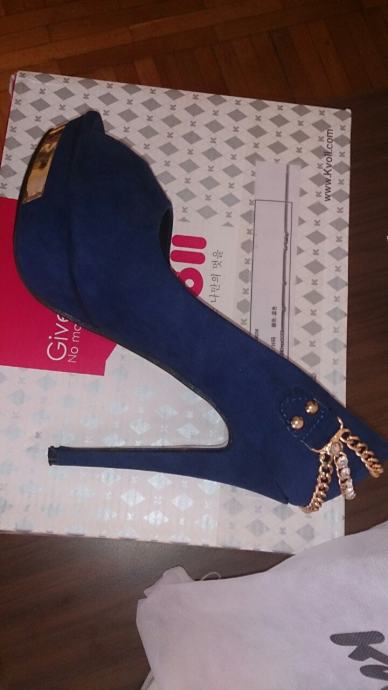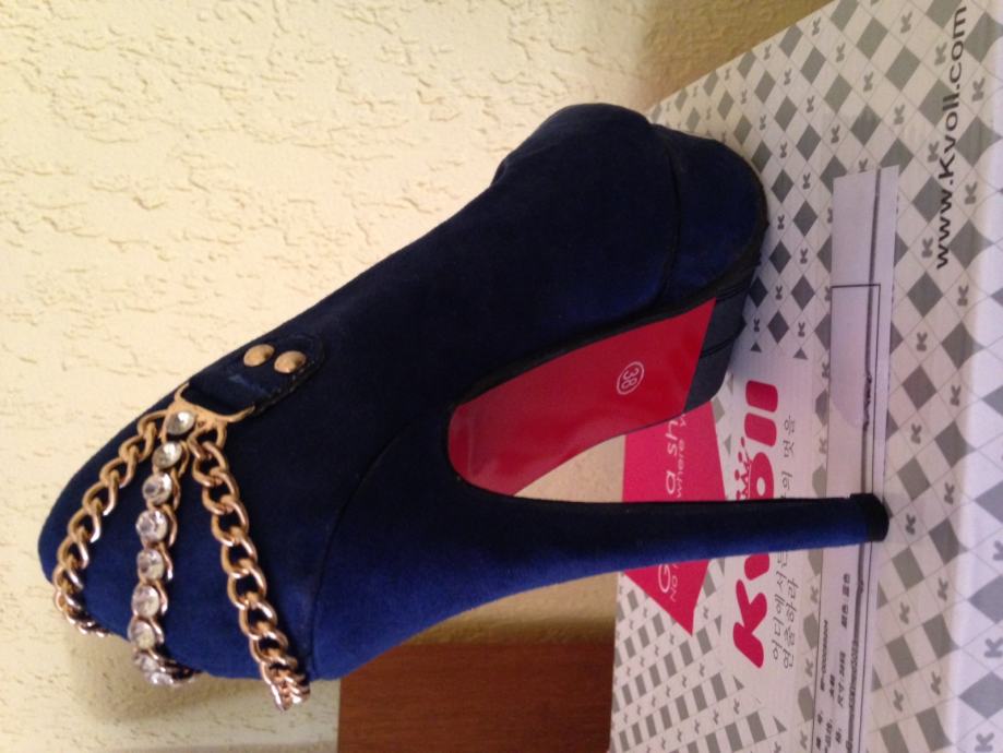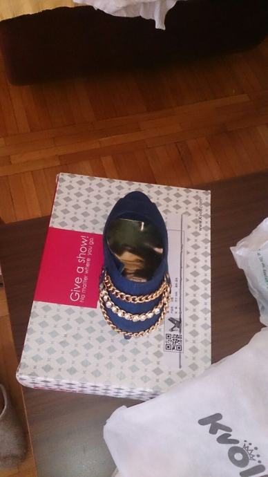 Potpuno nove, nenošene ženske sandale/cipele na štiklu, plave boje, broj 38. Napomena: realno za nogu 37,5 do 38. Štikla je originalnoj kutiji
