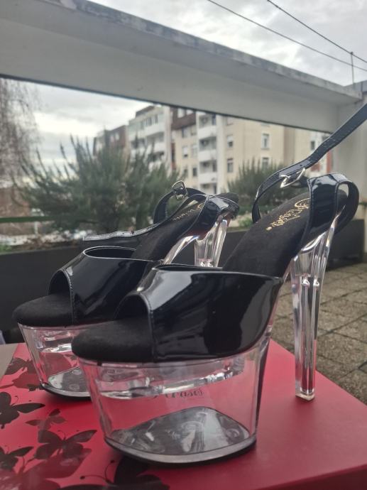 Prodajem svoje Pleaser Flashdance sandale (crne i prozirne s LED platformom).