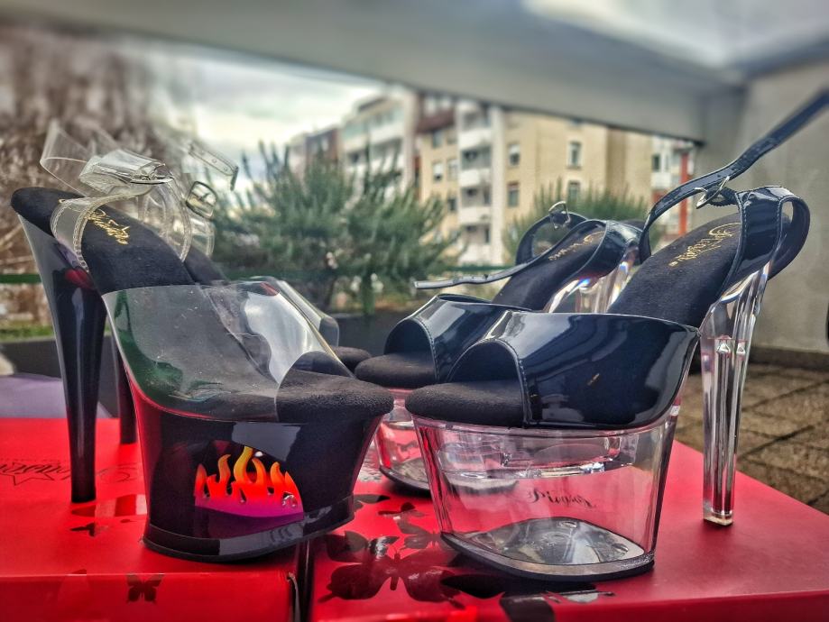 Prodajem svoje Pleaser Moon Fire sandale (crne i prozirne s ombre platformom).