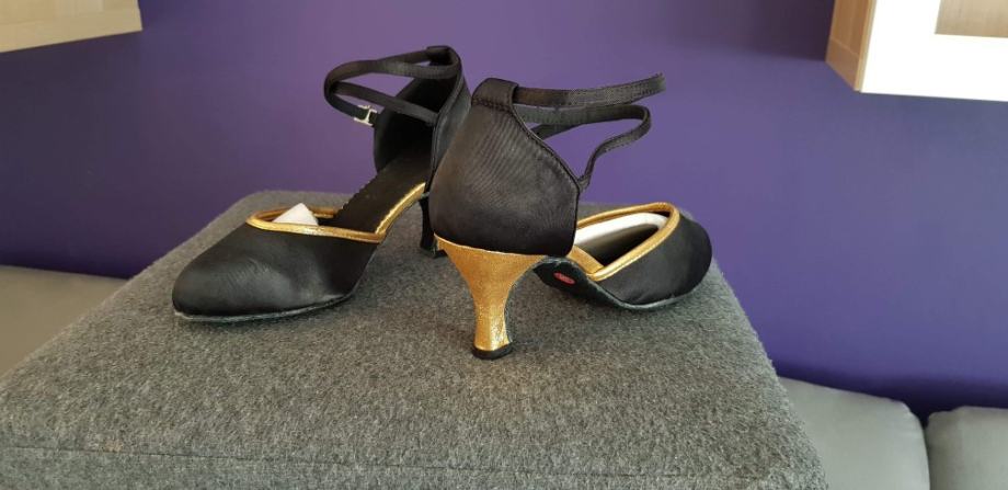 Plesne cipele broj 38, crne, peta 5 cm, nošene 2 puta i crno zlatne broj 38, peta 7 cm nijednom nošene.