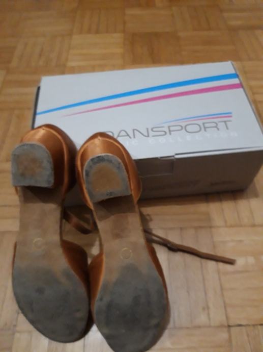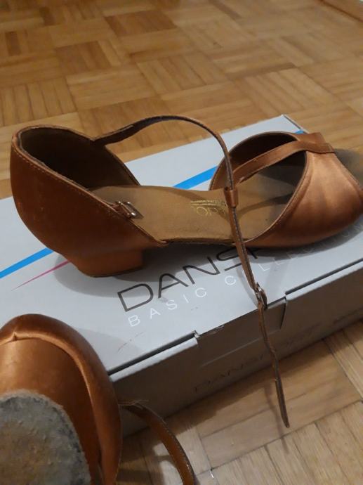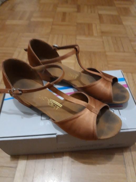 Plesne cipele za standardne i latino američke plesove na blok petu Dansport Cuban tan satin veličina 37, očuvane su.
