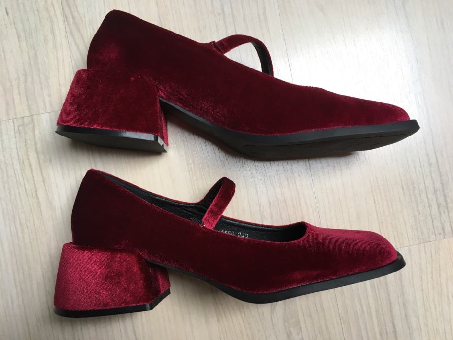 cipele u potpunosti izrađene od prirodne kože; izvana presvučene crvenim baršunom