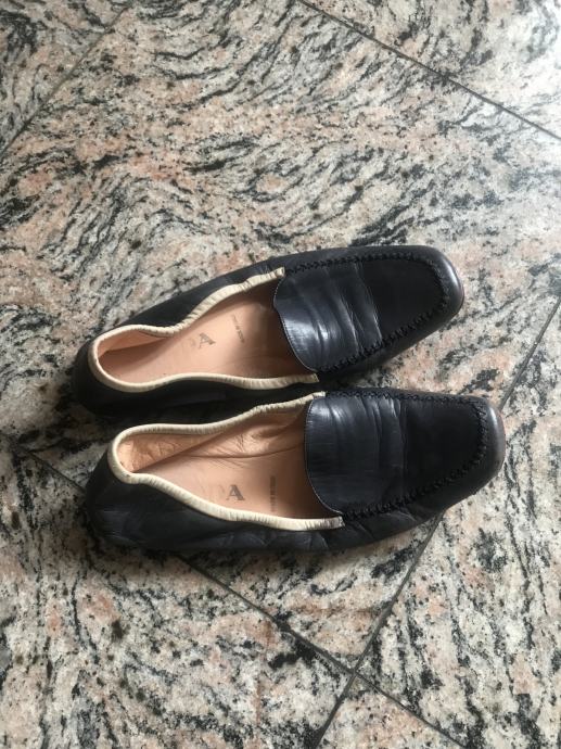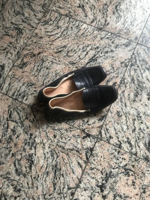 Kožne mokasinke Prada ,tamno plave ,malo nošene ,stopalo veličine 24 cm
