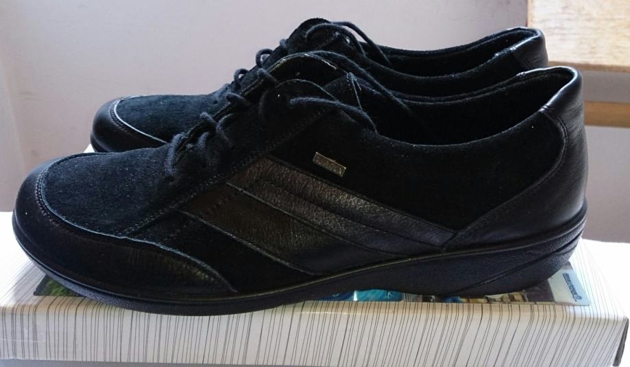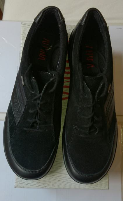 br. 40, gazište cca 25,5 cm, crne, prirodna mekana koža (kombinacija brušene i glatke), izrazito udobne, na vezanje, nove (puna cijena bila im je 499 kn).