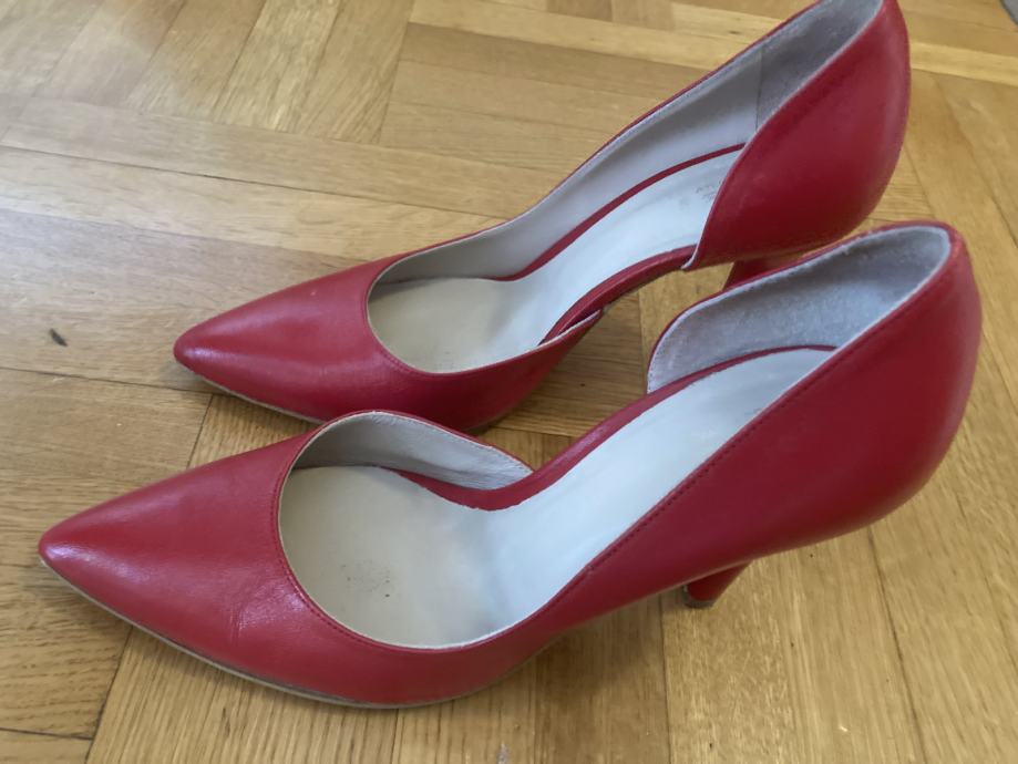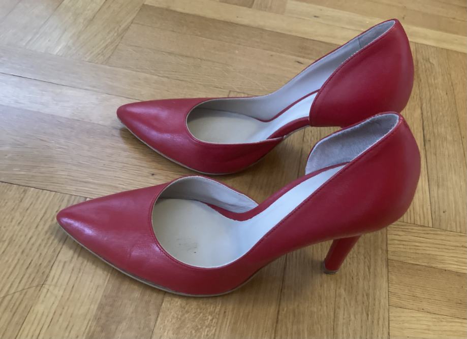 Prodajem crvene kozne salonke, br.39, visina pete cca 11 cm