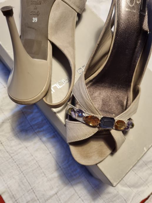 Prekrasne sandale (salonka) vel.39 u bež boji izuzetne kvalitete (sve koža), vrlo malo nošene, izgledaju kao nove. Cijena je bila 378,26 EUR (2850,00kn). Deklaracija je u prilogu.