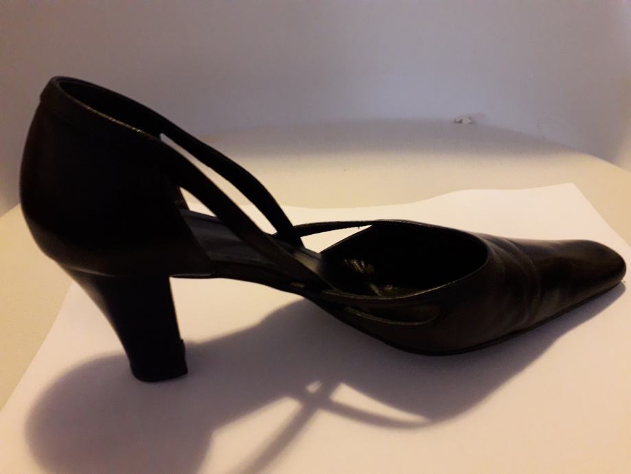 PRODAJEM CRNE KOŽNE SALONKE BR. 37 - VRLO UŠČUVANE, NOŠENE NEKOLIKO PUTA S PETOM OD 6,5 CM !