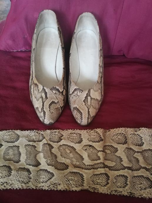 Salonke,ručni rad,koža kobre,broj 37,nošene par puta i komad kože kobre koji je ostao nakon izrade cipela i može se iskoristiti za torbicu ili novčanik.