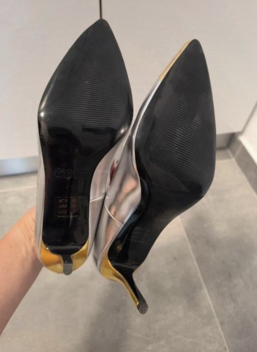 Srebrne salonke sa zlatnom petom. Potpuno nove, nikad ne nošene, s etiketom i u originalnoj ambalaži. Versace Jeans Couture. Veličina 41.