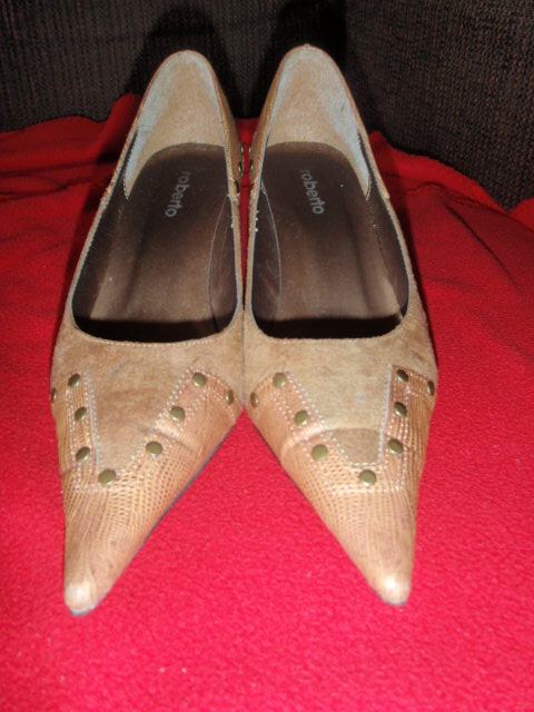 Salonke marke Roberto u smeđoj boji sa zakovicama. Veličina 38. Visina pune pete cca 5 cm. Jako dobro očuvane. Pogledajte moje ostale oglase.