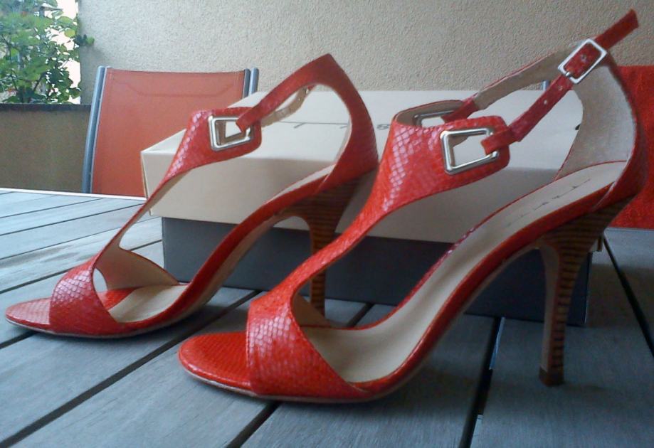 nove novcate, nikad nošene kožne narančaste sandale, made in Brazil. Visina pete 8 cm. Razlog prodaje je taj što mi ne stoje, makar se to tako u dućanu nije činilo, a druga stvar na koju sam poklekla (osim izgleda) je bila udobnost . Stoga sam bez puno razmišljanja izdvojila za ovaj par 999,00 Kn. Vi koje dijelite moju slabost na cipele, razumjet ćete. :) Veličina 39. Dužina potplate 25 cm. Dolaze u original kutiji na kojoj je još i cijena :)
