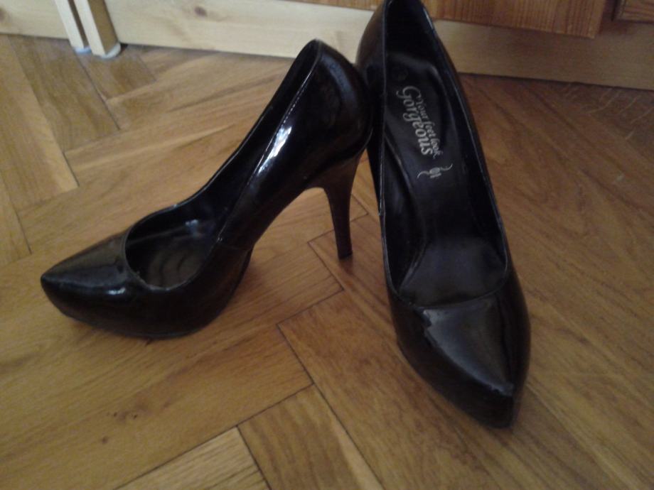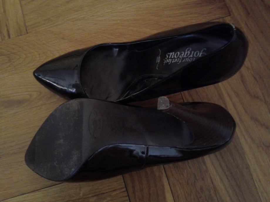 Prodajem crne,lakirane salonke,nošene jednom. Veoma udobne s potpeticom od 10 cm,veličina 40 ali bi odgovarala i nekom sa širom nogom i br. 39. Moguća i zamjena za neke čizmiceili štikle- br. 38 ili 40.