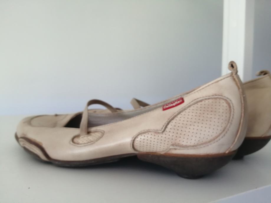Izvrsne cipele modne marke CallagHan. Plaćene 850 kuna. Kratko nošene. Stabilne. Poseban uložak s rupicama. Prilagodljiv. Kožne unutra i izvana. Na lijevoj cipeli na vrhu nekakva točka, ali to je u samoj koži.