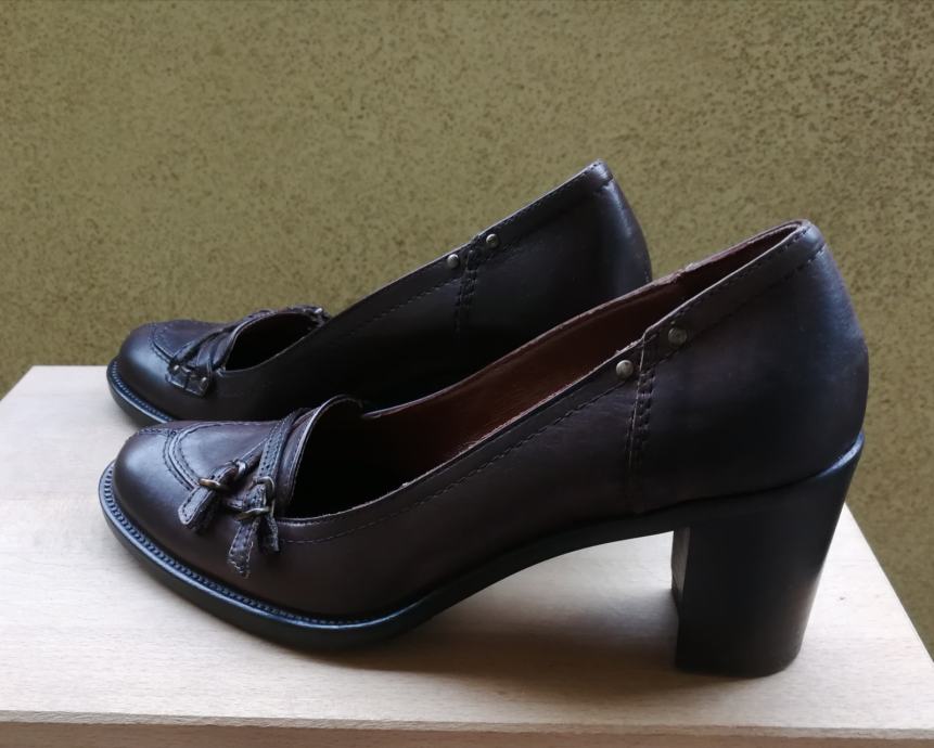Prekrasne, kvalitetne, kožne smeđe salonke br. 37, nošene jednom, visina pete 7 cm.