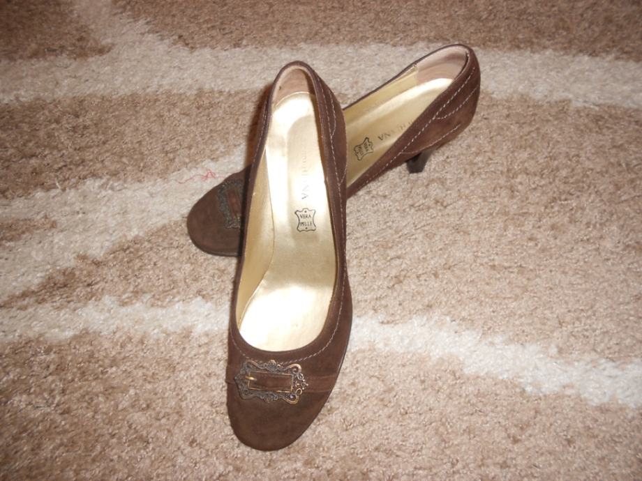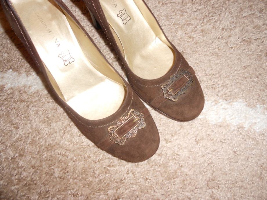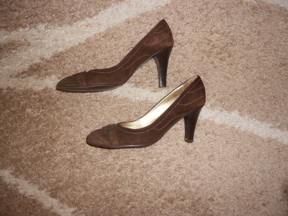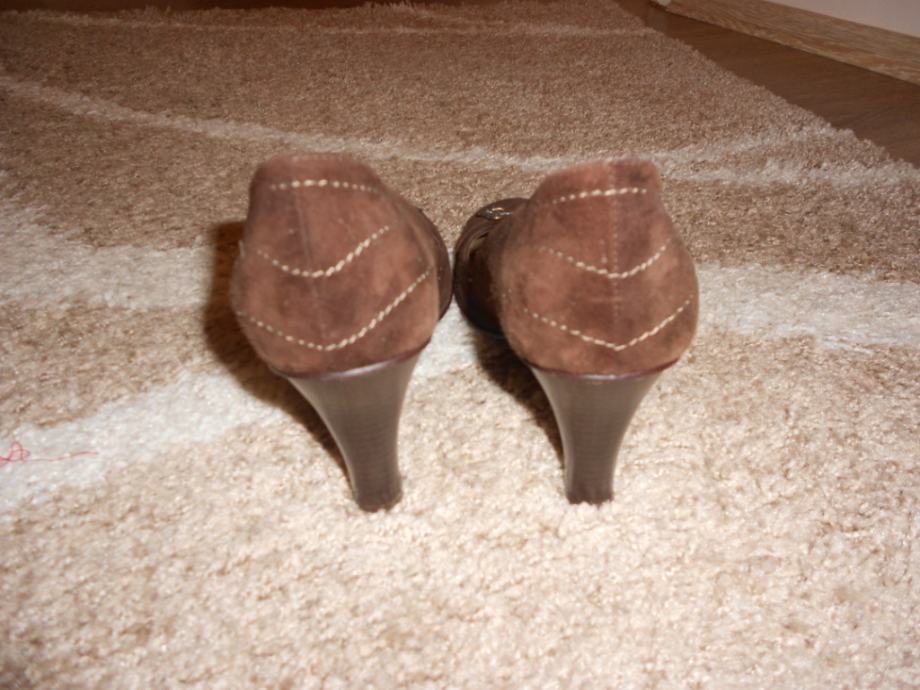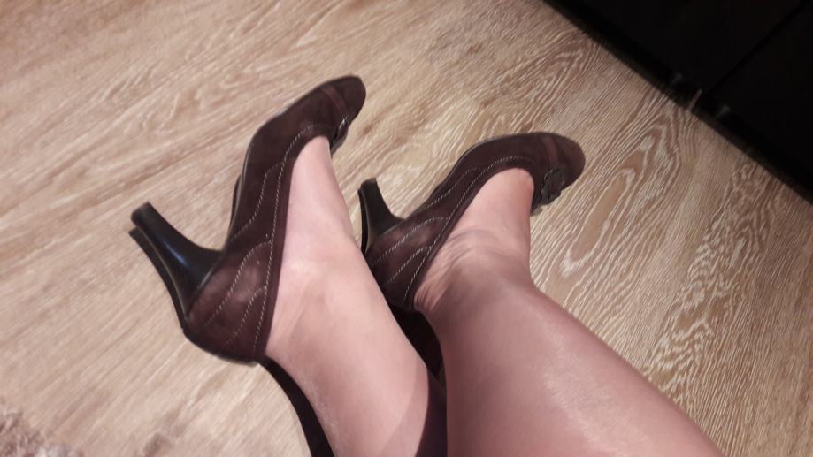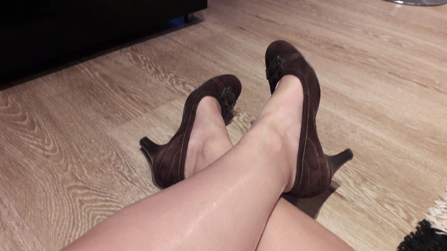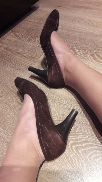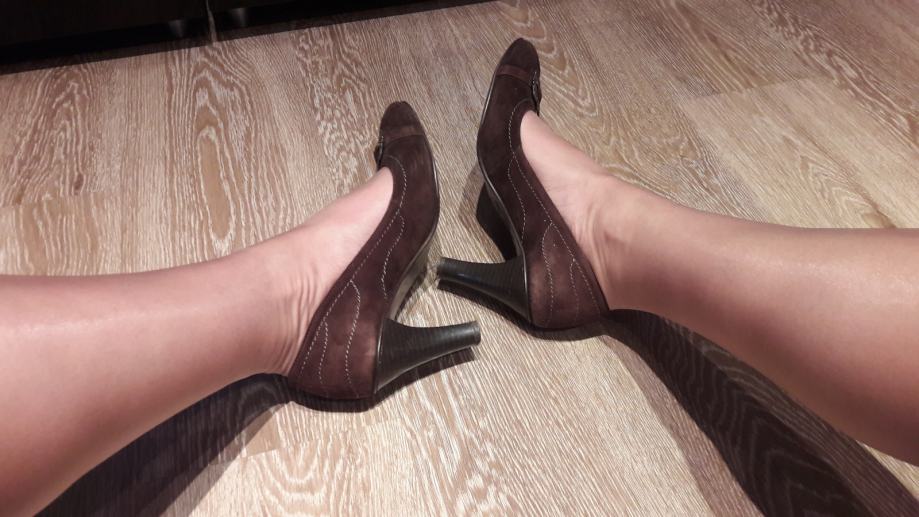 Smeđe cipele....mekane, kožne, kvalitetne i jakooo udobne. Peta srednje visine i komotno se može u njima provesti cijeli dan. Malo nošene.