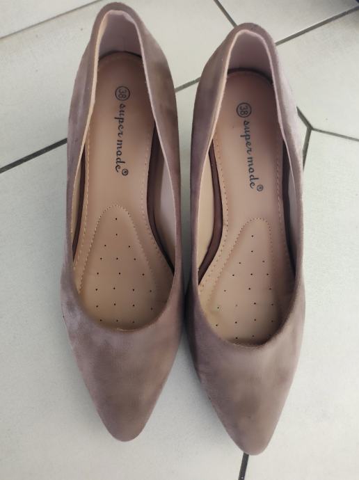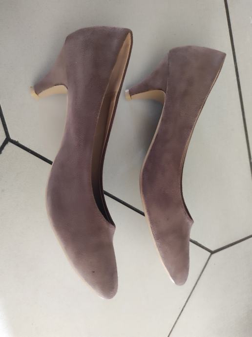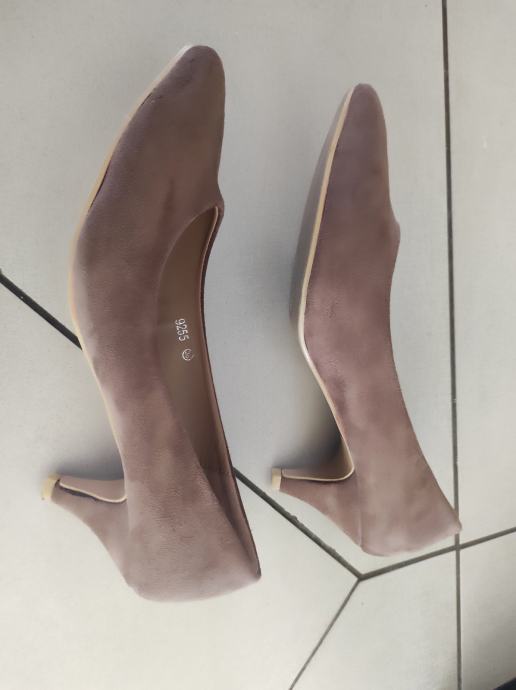 Elegantne smeđe salonke s petom visine 5 cm, malo nošene. Veličina 38, idealne za svakodnevne kombinacije ili svečane prilike. Vrlo udobne zbog mekanog umetka.