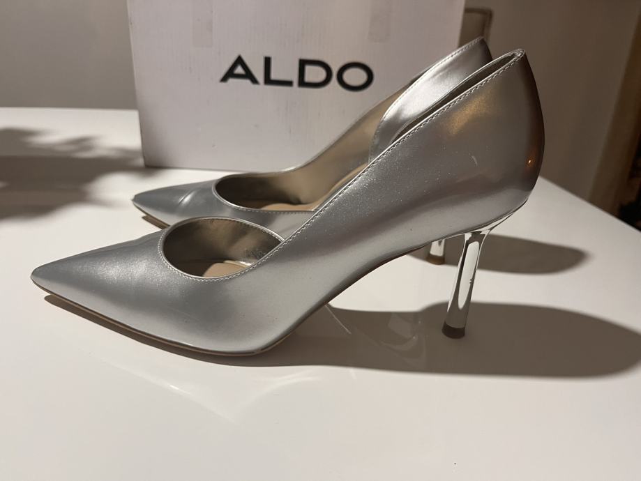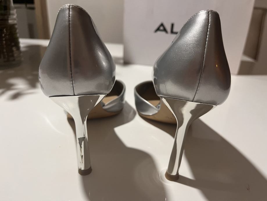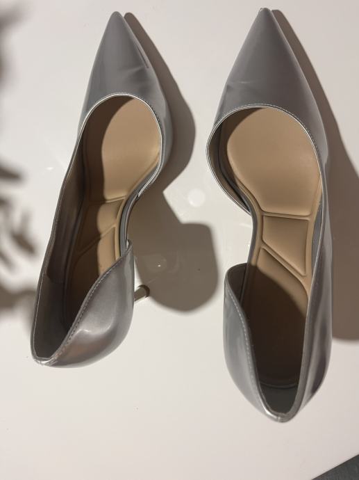 Prodajem srebrne štikle marke Aldo, veličina 39. Radi se o klasičnim pumparicama s istaknutim šiljastim vrhom i elegantnom tankom petom visine 8 cm. Materijal ima lijepi srebrni sjaj koji im daje svečan izgled. Peta je metalna, srebrne boje, što dopunjuje ukupni dizajn cipele. Blago oštećenje na peti.