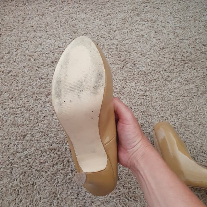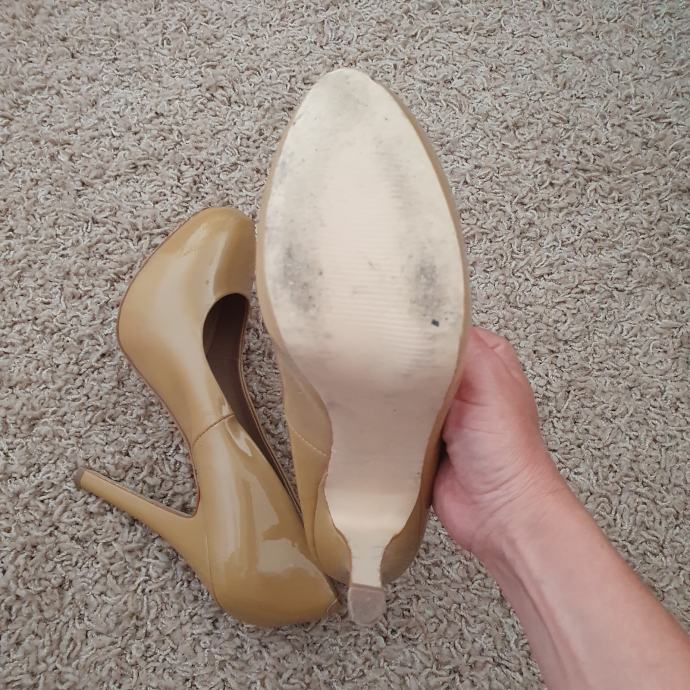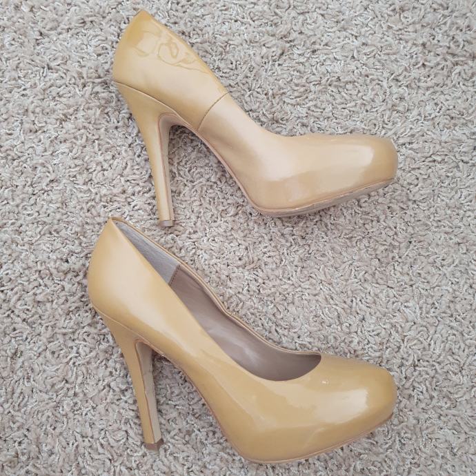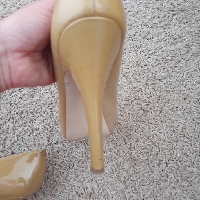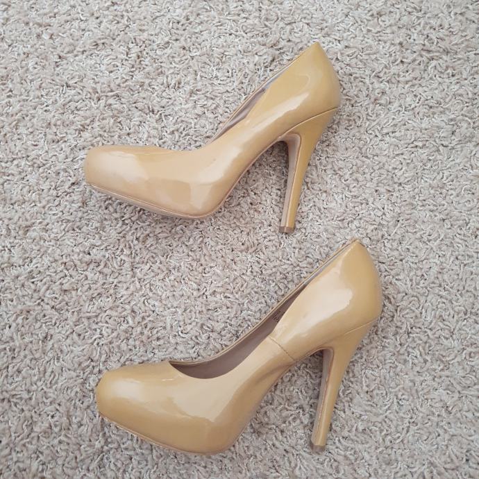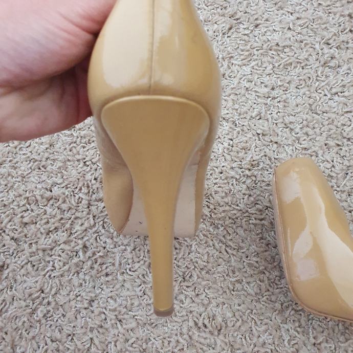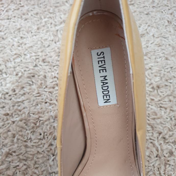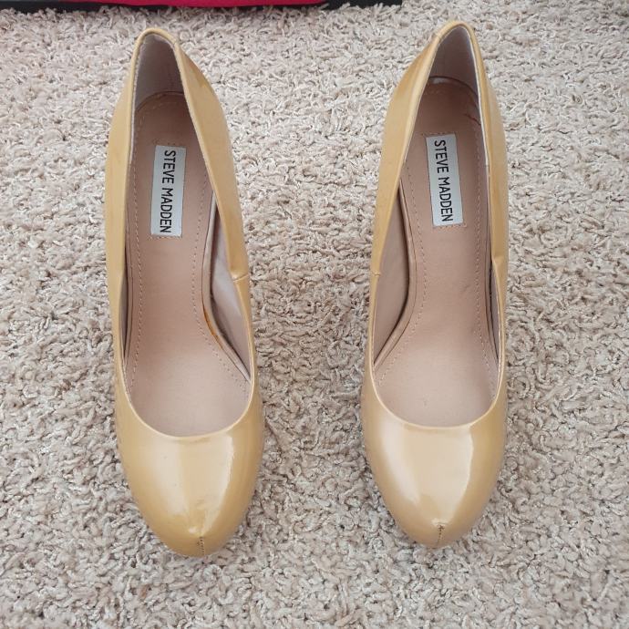 Bež lakirane cipele Steve Madden veličina 40. Duljina unutarnjeg gazišta 26 cm, visina pete 13 cm, visina platforme 3 cm. Uložak je od kože.