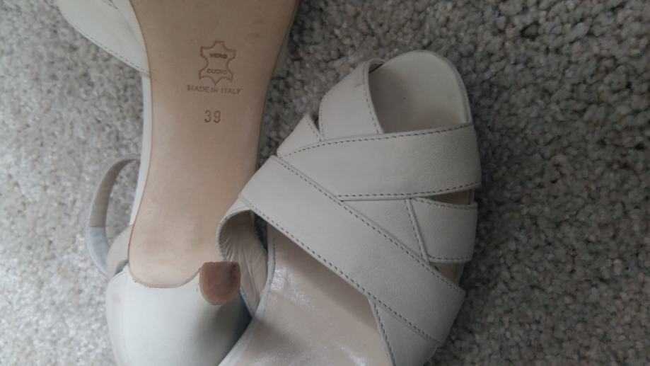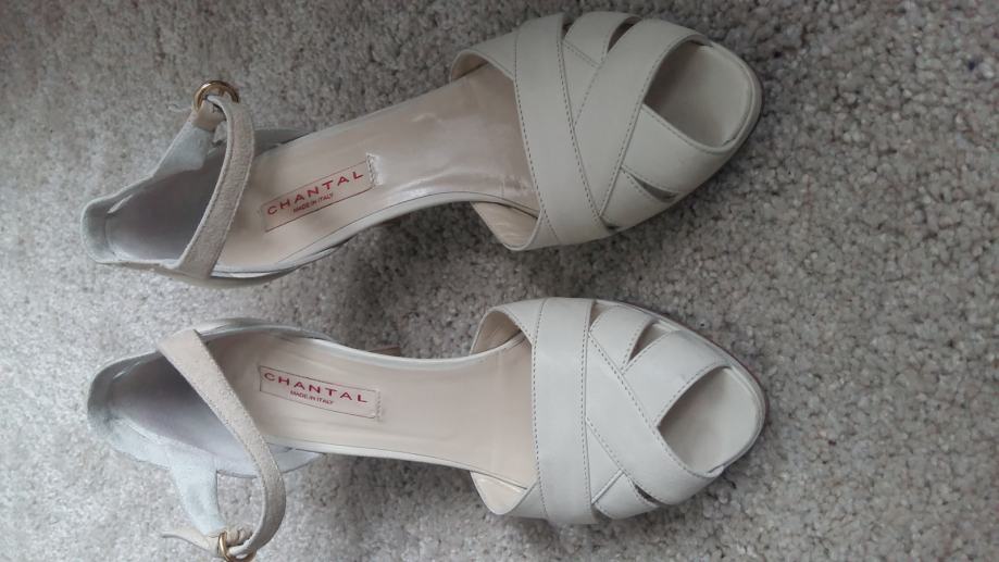 nove (jednom nošene na vjenčanju) kožne cipele CHANTAL (Made in Italy). Mliječne boje, veličina cipela 39, visina pete 8 cm. Kupljene u Zagrebu za 2000 kn. Kontakt tel: 098 / 940-76-86