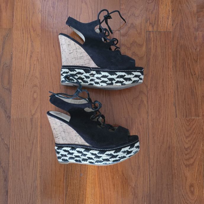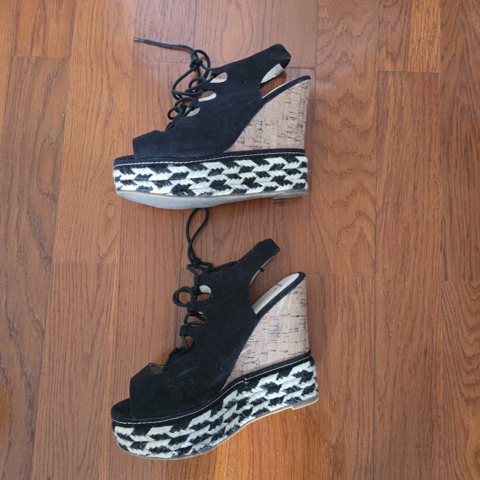 Tamnoplave špagerice na punu petu veličina 39. Udobne i stabilne. Naprijed se jako lijepo vežu.